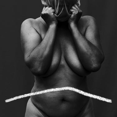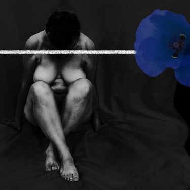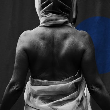 Inmanencia explores the female body as a territory of presence and inner permanence—an intimate space charged with symbolic resonance that does not need to extend beyond itself to be felt. Through black-and-white imagery immersed in muted, atmospheric greys, the series transcends the literal representation of the body to reveal what is inherent, latent, and self-contained in human experience. Each photograph invites a quiet encounter: a body that does not seek to be interpreted from the outside but to unfold from within. Subtle elements—such as a white line, a blue circle, or a translucent flower—do not intrude upon the image; they emphasize the symbolic link between form, identity, and memory. Femininity here is not displayed but affirmed; not an external object, but an autonomous space of meaning.