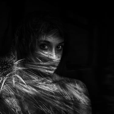 Mímesis is a visual exploration of how the human figure dissolves into its surroundings. Through layered portraits, blurred textures, and subtle distortions, the body becomes intertwined with nature, memory, and symbolic matter.